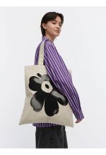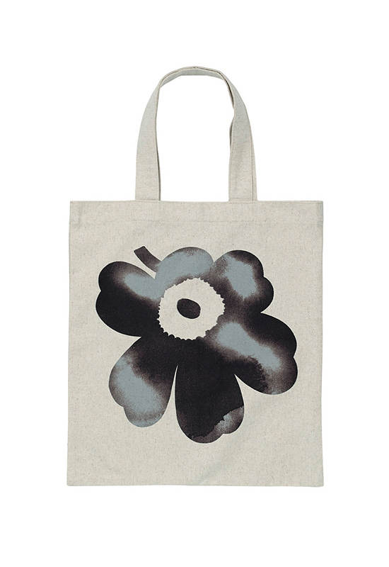 The Vankka tote bag is made of a firm cotton and linen blend, and it features the large Akvarelli Unikko pattern, which looks like it was painted with watercolours.
