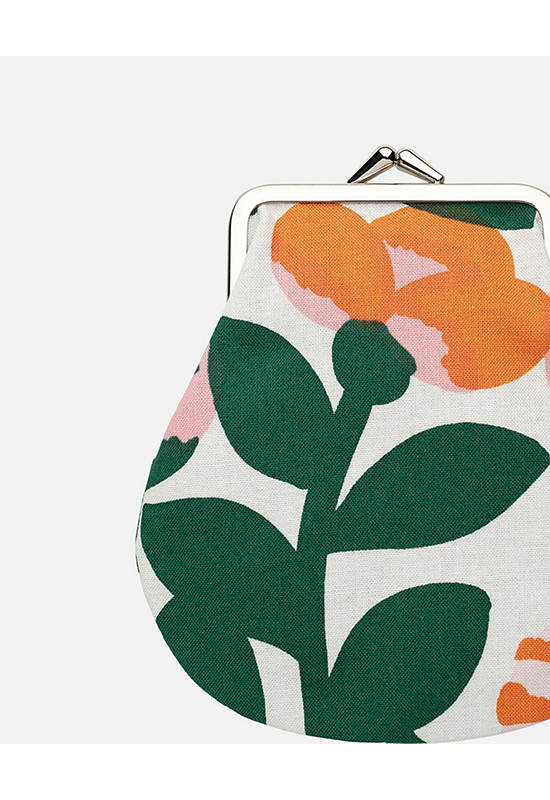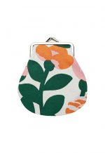 Made of unbleached cotton, the Pieni Kukkaro purse is a multipurpose classic. This purse is ideal for cards and other small things. It has a metallic frame that is easy to snap open and shut. This purse features Pieni green green pattern. The material is printed in Helsinki.
