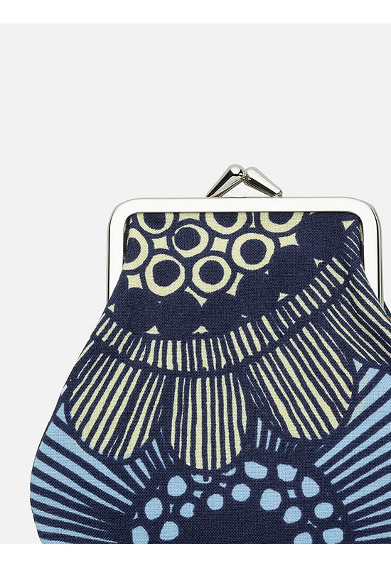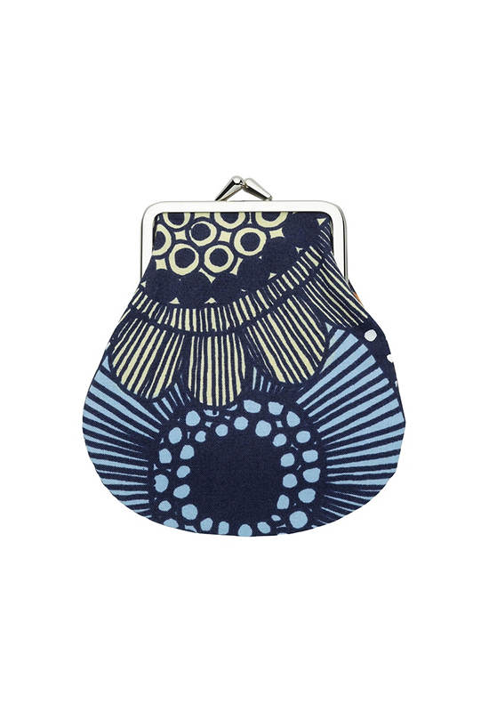 Made of unbleached cotton, the Pieni Kukkaro purse is a multipurpose classic. This purse is ideal for cards and other small things. It has a metallic frame that is easy to snap open and shut. This purse features Pieni siirtolapuutarha pattern. The material is printed in Helsinki.