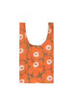 The Smartbag is made of recycled polyester in the Unikko pattern. When not in use, the bag can be folded up and stored in the inside pocket.