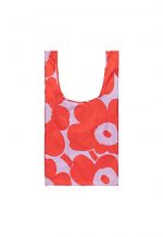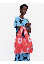 The Smartbag is made of recycled polyester in the Unikko pattern. When not in use, the bag can be folded up and stored in the inside pocket.