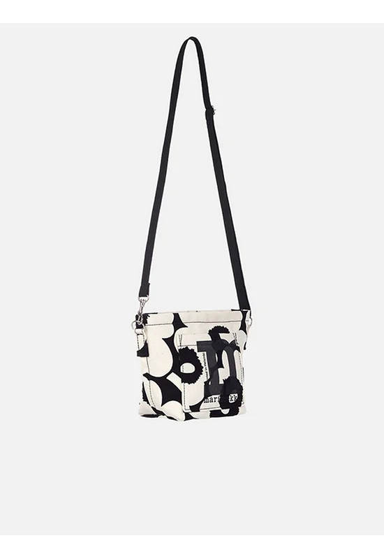 - The Mono Mini Crossbody is made of unbleached organic cotton, which features the Unikko pattern printed in Helsinki. The shoulder bag has a zipper closure, an open pocket on the outside, and an adjustable shoulder strap.