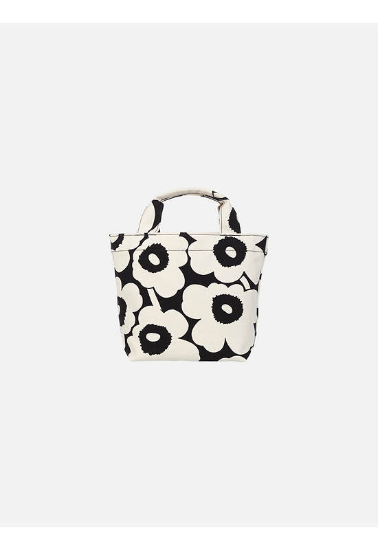 - The Mono Mini Tote is made of unbleached organic cotton, which features the Unikko pattern printed in Helsinki. The small bag has an open pocket on the outside.