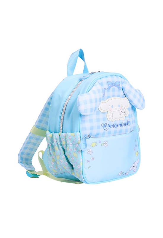 Add a pop of cuteness to your everyday with SANRIO This adorable backpack features charming plaid designs in lovely pastel shades with prominent 3D accents at the top. It includes a main zippered compartment, a front zip pocket, and side mesh pockets for convenient use.