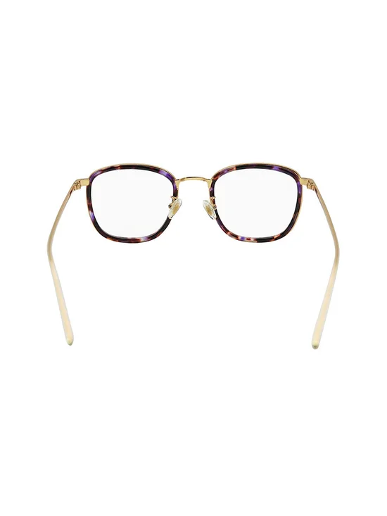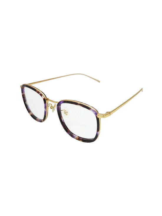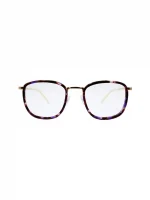 The Iris-ADE C3 glasses frame have purple (Tiger print) Acetate frame with a shiny surface and gold metal frame side with a shiny surface. The sunglasses legs are gold metal with a shiny surface. No sunglasses legs cap.