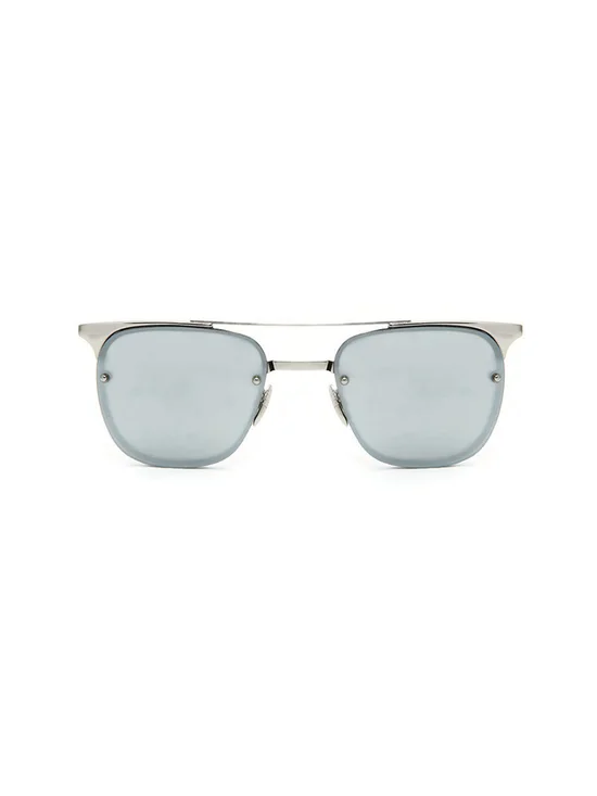 The Mirage-ANN C8 sunglasses have silver metal frame with shiny surface. The lenses are silver mirror lens, making it look opaque and helping to cover the eyes of the wearer very well. The sunglasses legs are silver metal with shiny surface. No sunglasses legs cap.