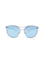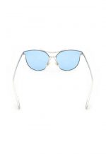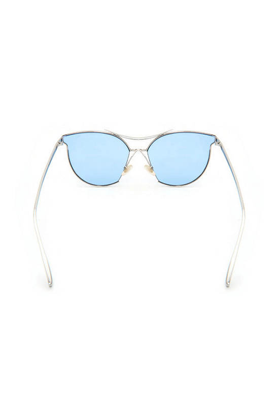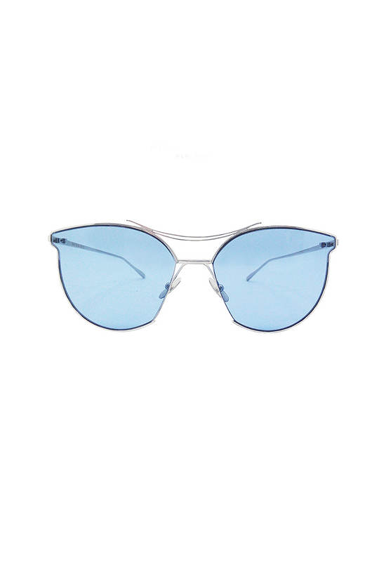 The Mystic -KB C21 sunglasses have a silver metal frame with a shiny surface The lenses are blue lens, making it possible to partially see the wearer’s eyes. The sunglasses legs are silver metal with a shiny surface. No sunglasses legs cap.