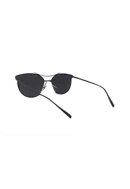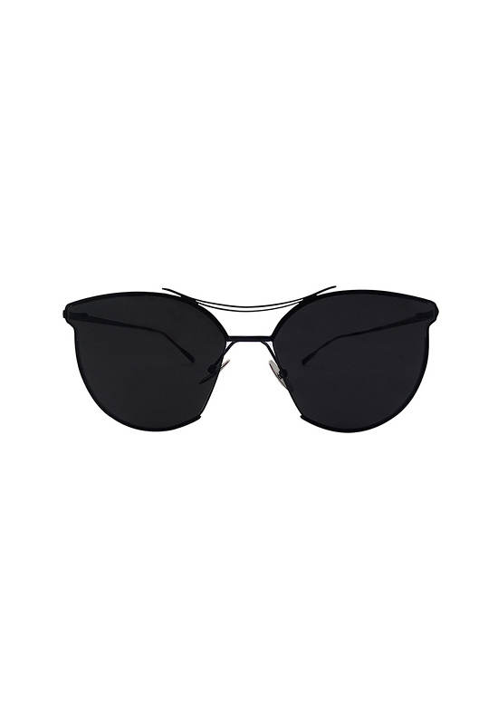 The Mystic -KB C32 sunglasses have a black metal frame with a shiny surface The lenses are black lens, making it possible to partially see the wearer’s eyes. The sunglasses legs are black metal with a shiny surface. No sunglasses legs cap.