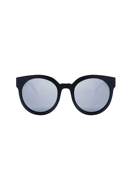 The Rain-KB C2 sunglasses have a black acetate frame with a shiny surface. The lenses are silver mirror lens, making it look opaque and helping to cover the eyes of the wearer very well. The sunglasses legs are black acetate with a shiny surface. No sunglasses legs cap.
