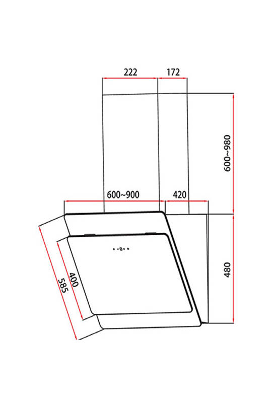 - 60cm chimney hood with aluminum filter