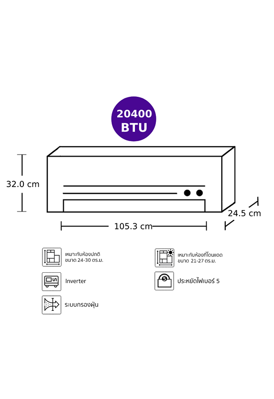 Technology helps to effectively remove PM 2.5 dust and dirt. Swing design to send wind to high places. to avoid direct exposure to wind With quiet operation, there is a self cleaning system, automatic cleaning after power off, dehumidification, reducing the accumulation of dirt.