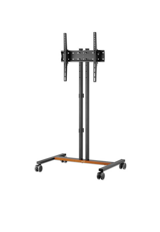 Bring the TV to you. When it needs to be somewhere else, move it there with ease. The Manhattan Compact Height-Adjustable TV Cart puts the TV on wheels so you can take it to different spaces as needed, avoid an annoying glare, or overcome a restrictive furniture setup. VESA-compliant and constructed of quality materials, this well-made rolling TV stand is ideal for smaller TVs between 34″ and 55″ that weigh up to 35 kg (77 lbs.)