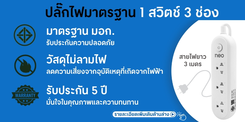 เช็ควิธี เลือกปลั๊กไฟให้ปลอดภัย เลือกปลั๊กไฟ มาตรฐาน มอก. NEO