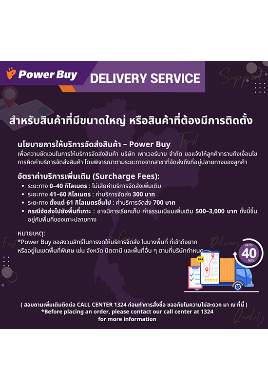 - For distances over 60 km, a delivery fee of 700 Baht applies.
