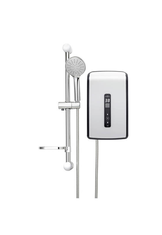 Chrome shower with 5 adjustable water levels, stainless steel shower hose with stainless slide rail. Chrome Plated Steel and soap tray