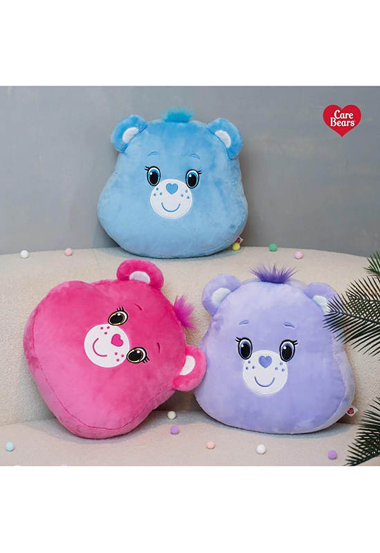 CARE BEARS Plush Cushion – Made from premium-quality fabric with meticulous craftsmanship and officially licensed designs. Featuring a large, soft, and fluffy bear head with rosy cheeks, this cushion is perfect for cuddling, leaning, or supporting your back while working. Easy to care for and clean, it guarantees charm and joy for Care Bears fans of all ages.