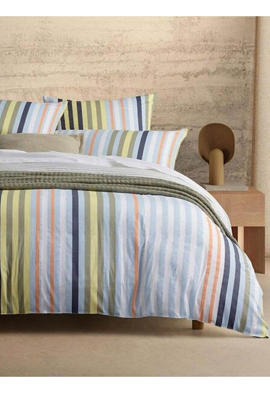 Bring seaside styling into your bedroom, with Sheridan’s Halston Quilt Cover Set. Your home will feel like a holiday with this summery, striped design, evoking memories of beach umbrellas and bright deck chairs. The reverse features a horizontal stripe in neutral colours for double the fun. Printed onto cotton sateen. Printed bold stripes Versatile styling options Horizontal striped pattern on reverse