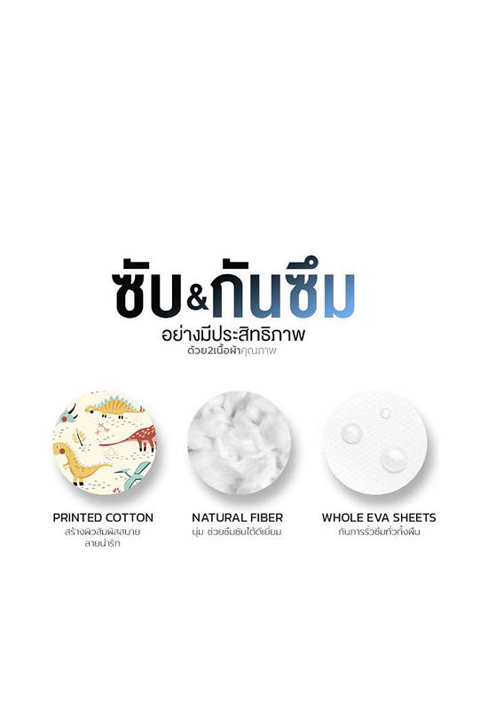 SIAMLATEX baby waterproof pads, waterproof pads, fit the baby’s body. Easy to wipe clean, dry quickly. The second layer of the sheet is a thin layer of fiber with soft properties. Help support to make the baby feel comfortable while sleeping and resting. The thin edge at the corner of the sheet helps waterproofing outside the sheet. Can be rolled up for easy storage, easy to carry, suitable for use outdoors and indoors.