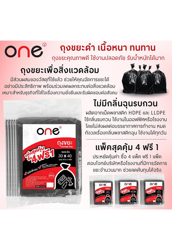 @ONE ONE ถุงขยะดำ 24×28 นิ้ว แพ็ค 20 ใบ (แพ็ค 4 ฟรี 1). 100% оригинал