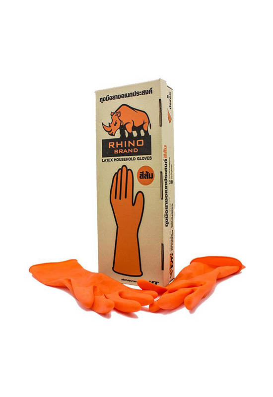 Rhino RHINO ถุงมือยางอเนกประสงค์ สีส้ม ไซส์ M รุ่น 938-M1D (กล่อง 12 คู่). 100% оригинал