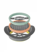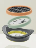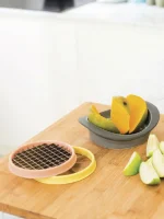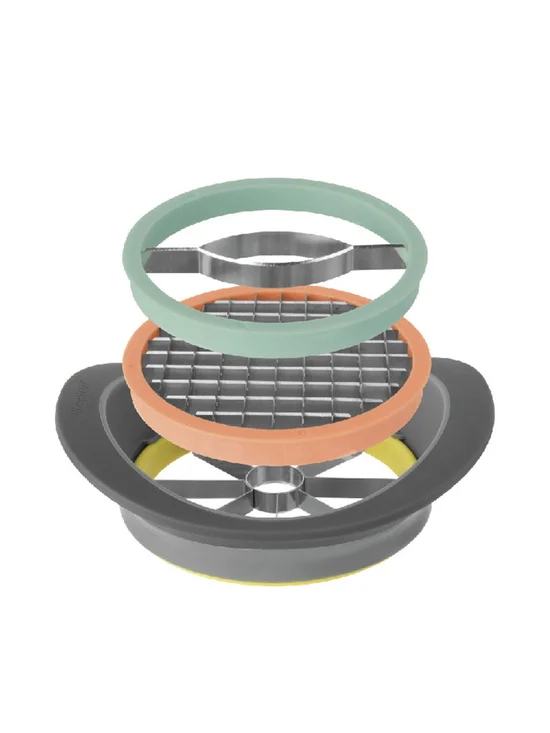 Leo All-In-One Slicer Set 3950020 by BergHoff The Leo all-in-one slicer is a beautifully designed slicing tool for fruits and vegetables. Its sharp interchangeable blades core, slice and dice apples, mangoes, potatoes with one simple press.