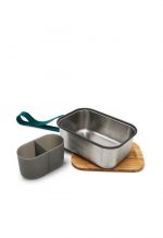 Sandwich Box from the brand BLACK+BLUM A 900ml / 30 fl oz stainless steel lunch box that makes it easy to take your food with you and even includes a bamboo lid that doubles as a chopping board.