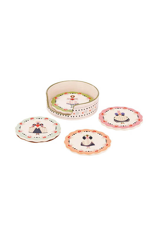 This Cath Kidston Spring Birds Coaster Set four features scallop-shaped ceramic coasters, each with a unique spring-inspired design and colour.