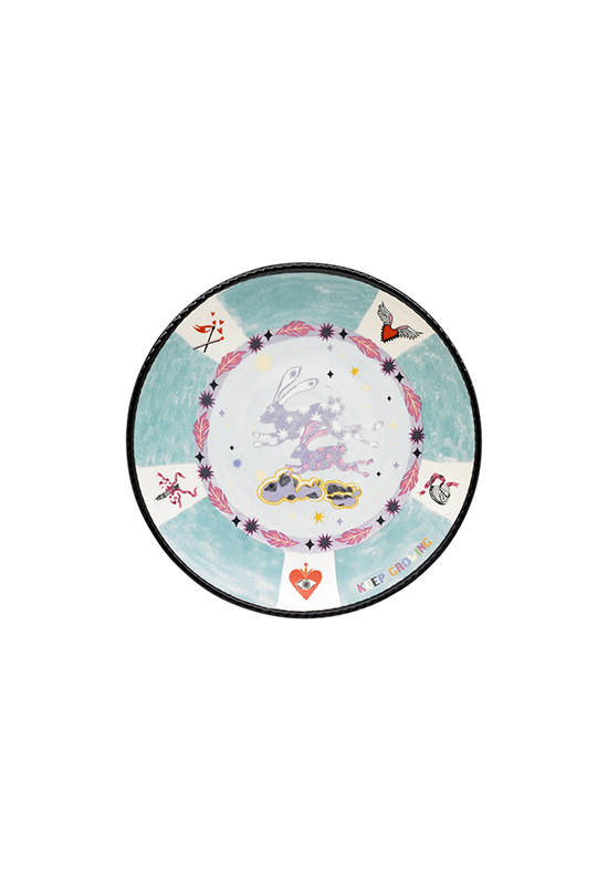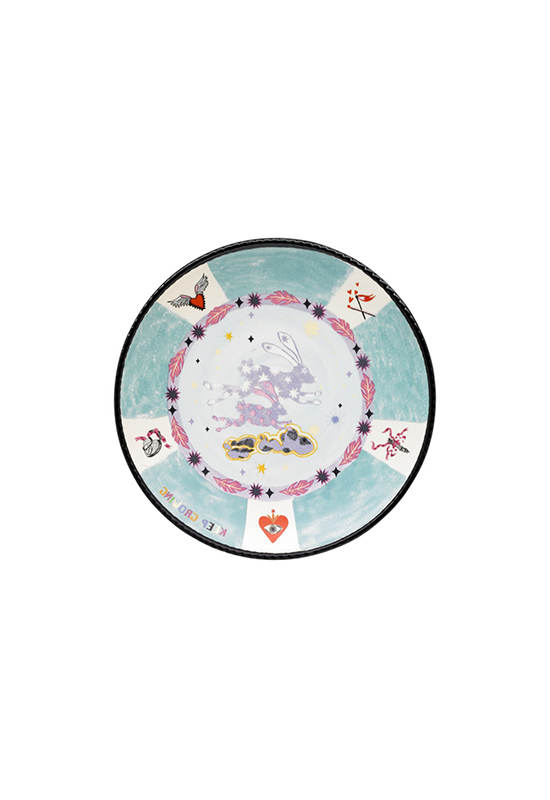 We love our collection of Spirit Animals side plates for adding a joyful touch to any dining table. Each stoneware plate depicts an animal and its attributes inspired by ancient mystical animals. This one is of our Wild Wolf howling against a starry lilac backdrop and framed by lucky charms. Perfect for serving small meals, hors d’oeuvres or as side plates – as the name suggests. Mix and match with other coordinating tableware, glasses and kitchen textiles in the same collection for a fun and vibrant setting for your meal.