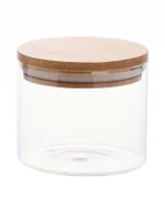 Round Glass Jar With Airtight Bamboo Lid 95 X 80 mm. 440 mL.