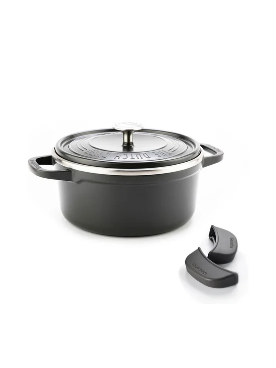 - With silicone holders. Cast aluminium with double-walled insulating lid with heat refelctive shield to improve heat efficiency.