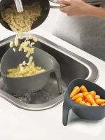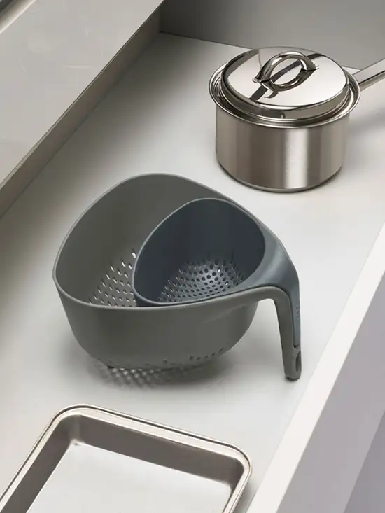 This Joseph Joseph set of two colanders feature clever vertical handles that leave one hand free for operating the tap and ensure they remain upright and stable if placed in a sink.