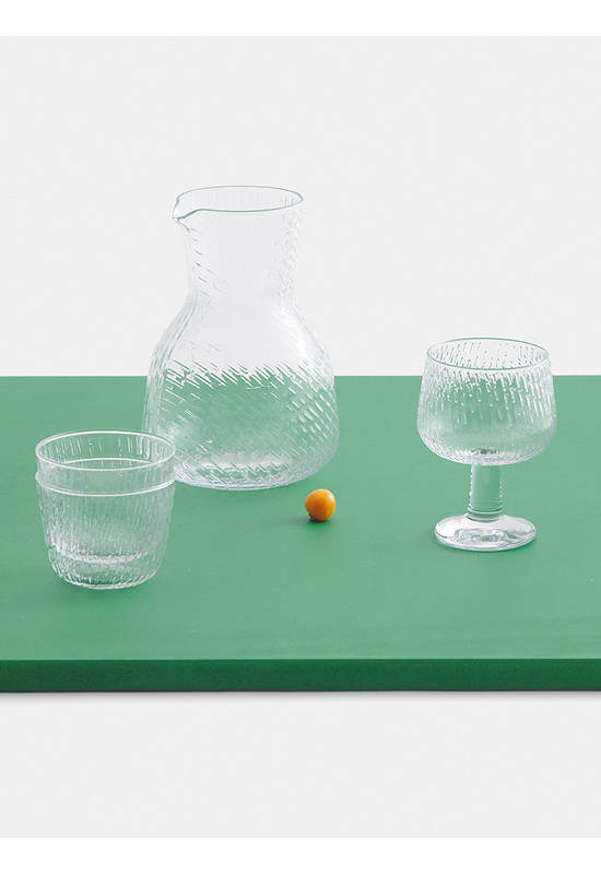 The Syksy (autumn) glass series, designed by Matti Klenell, continues with the exploration of nature and weather phenomena familiar from Marimekko’s art of printmaking. The overarching theme of the new series is the shapes of autumn rain, from a gentle drizzle to powerful, drenching downpours.