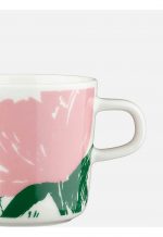 The Puutarhakutsut pattern features on this Oiva coffee cup. The cup is made of dishwasher, oven, microwave and freezer proof white stoneware.
