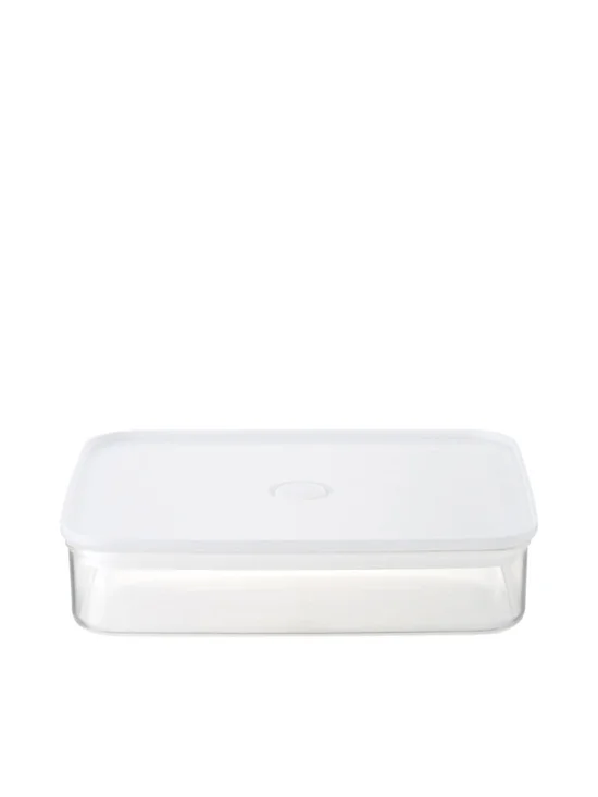 MUJI Sealing Up Preservation Container.The storage container is made of engineering plastic for excellent heat and cold resistance. Excellent transparency gives the appearance of glass. The lid has a valve, allowing it to be used for microwaving with the lid on. (Heat resistant temperature 140 degree Celsius, cold resistant temperature -20 degree Celsius)