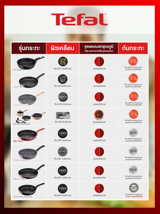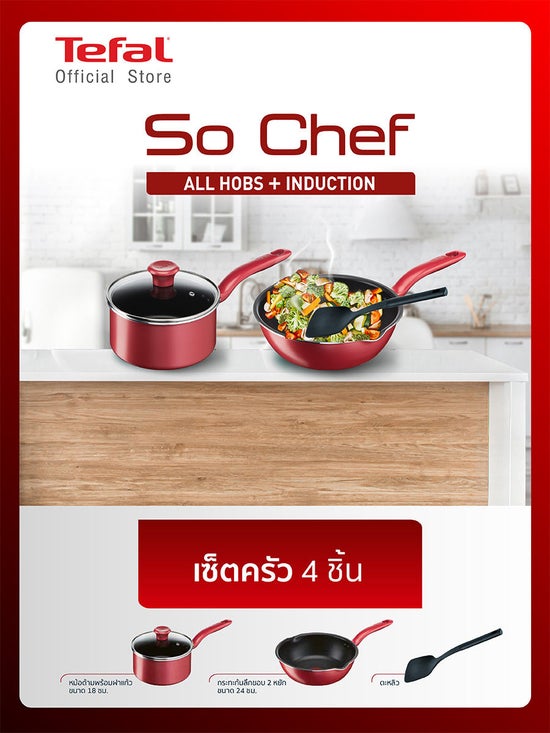 TEFAL ชุดหม้อกระทะผิวเคลือบ อุปกรณ์การทำอาหารสำหรับคุณแม่บ้านมาให้เลือกหาอย่างครบครันไม่ว่าจะเป็น กระทะ หม้อ ตะหลิว จบภายในชุดเดียว สามารถปรุงอาหารแสนอร่อยของคุณได้อย่างน่ามหัศจรรย์