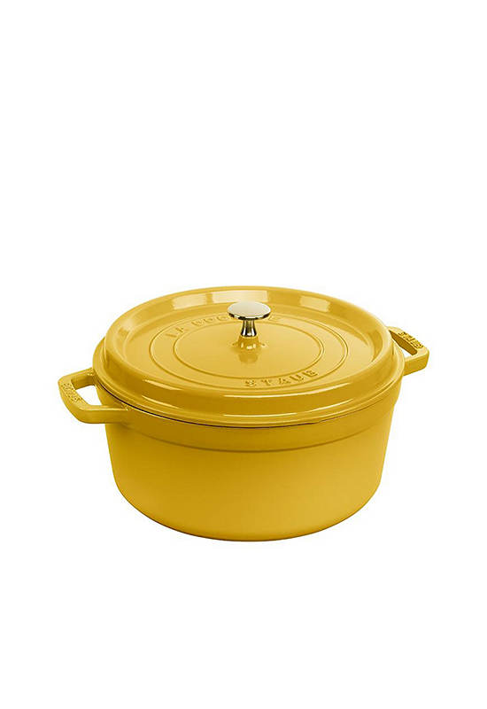 With a cast iron Cocotte, all you have to do is prepare the ingredients and sear the meat, then place it in the oven for several hours. The special structure of the STAUB Aroma Rain lid even takes care of the basting for you. When it is done, the bright yellow enamel coating looks great on the table as well!