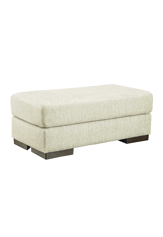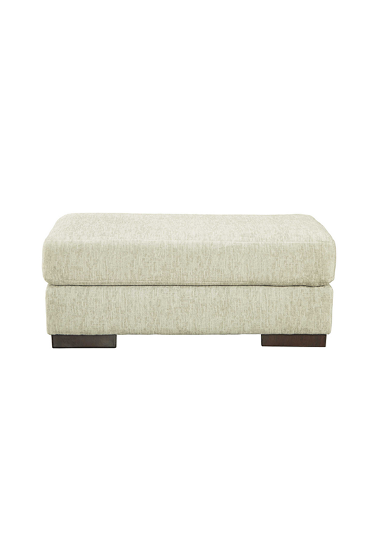 Easy on the eyes and irresistibly comfortable, this ottoman is covered in luxurious chenille microfiber in a light, neutral hue. The versatile and visually appealing piece cradles your tired feet as you sit back and relax at the end of a long day. Whether it’s paired with a sectional or on its own, this ottoman feels right at home in your modern decor.