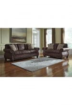 Rich with the traditional beauty of nail head accents and stylish window pane stitched details, the “Breville-Espresso” upholstery collection offers plush comfort elegantly wrapped within a rich faux leather upholstery. The sweeping rolled arms and rich finished bun feet perfectly work together to magically transform the décor of any living room environment.