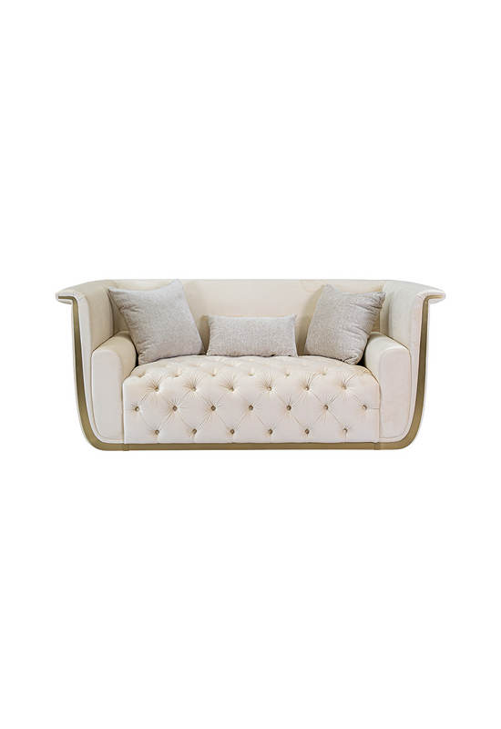 Color : Cream Sofa with Gold Line/Dark Brown Leg