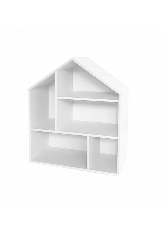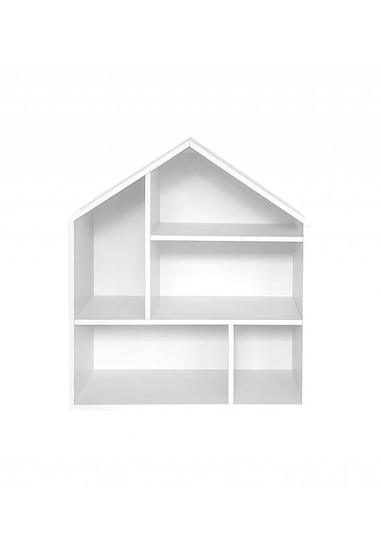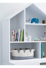 • The house-shaped shelf with storage is not too tall. Children can use it as a toy house shelf.