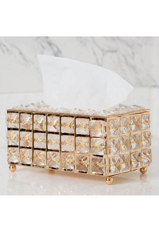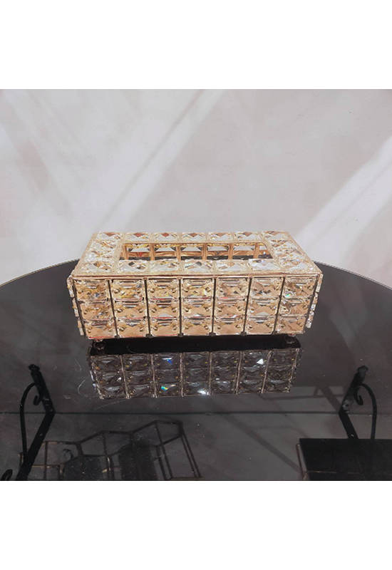 Crystal Tissue Box Rose Gold Color Dimension : Ledght 20cm Width 12cm Height 11cm Material : Aluminium and Acrylic Cannot issue a tax invoice