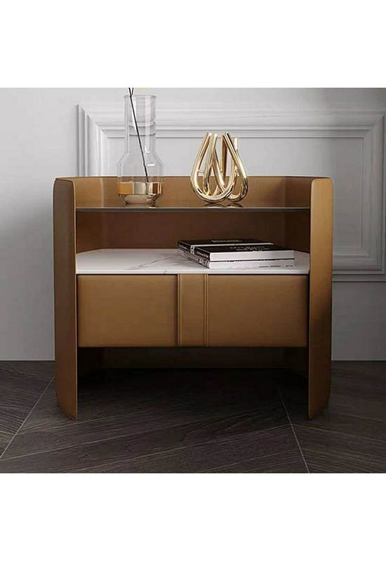 Top material with marble, can charge wireless phones. Shiny gold stainless steel legs