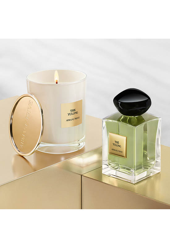 The new ARMANI/PRIVÉ CANDLE collection brings inspiration and escape to every moment. With each of their unique fragrances, each candle evokes a distinctive atmosphere. As the candles burn, they cast a soft light, creating an elegant, soothing mood to punctuate the day. Each of these fragrances, captured in the five scented candles, creates its own inimitable ARMANI/PRIVÉ moment. Among these moments, is the revitalizing quality of THÉ YULONG, an energizing scent that evokes China’s awe-inspiring mountains.