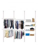 - The rack comes with 3 Poles 4 Bars 2 Shelves 2 Baskets for hanging more clothes and is easy to install without drilling.
