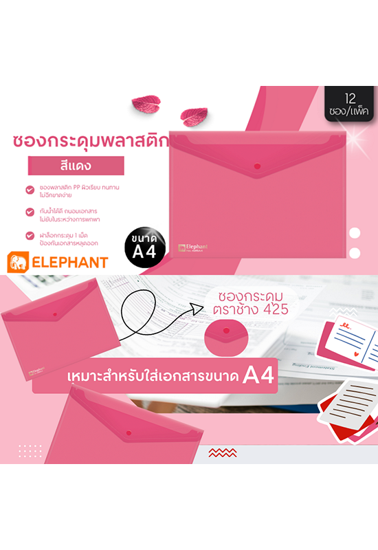 #ซองกระดุมพลาสติก #ซองใส่เอกสารA4 #อุปกรณ์สำนักงานELEPHANT #ELEPHANT425 #ซองเอกสารสีแดง #ซองกระดุมA4