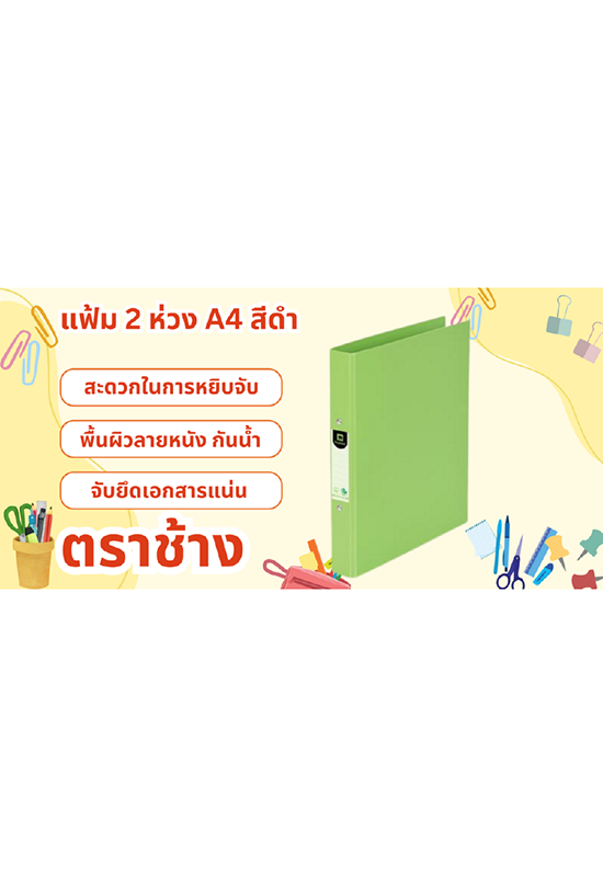 ELEPHANT ตราช้าง แฟ้ม 2 ห่วง A4 221 สัน 3.5 ซม. สีเขียวมะนาว มีปกกระดาษแข็งหุ้ม Duraplast กันน้ำและรอยขีดข่วน พร้อมคลิปเหล็กกลม 2 ห่วงที่แข็งแรงและไม่เป็นสนิม น้ำหนักเบา Super Light พกพาง่าย เหมาะสำหรับการใช้ในงานสัมมนาหรือทำคู่มือ มีป้ายสติกเกอร์สันแฟ้มสำหรับแยกหมวดหมู่เอกสาร ค้นหาง่าย ปลอดภัยต่อผู้บริโภคและสิ่งแวดล้อม เหมาะสำหรับใส่เอกสารขนาด A4 #กระดาษ #แฟ้มห่วง