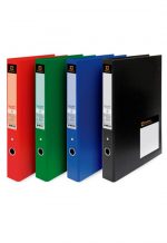แฟ้มตราช้าง ขนาด F4 สัน 3 ซม. สีดำ ปกพลาสติก PP หนา 1.5 มม. ลายไฟเบอร์ กันน้ำและรอยขีดข่วน มาพร้อมกับคลิปโลหะกลม 2 ห่วง จากยุโรปที่แข็งแรงและไม่เป็นสนิม มี Finger Ring ที่สันแฟ้มด้านล่าง ช่วยให้หยิบจับได้สะดวก น้ำหนักเบา เหมาะสำหรับการใช้งานนอกสถานที่หรืองานสัมมนา ขนาด 25 x 35 ซม.