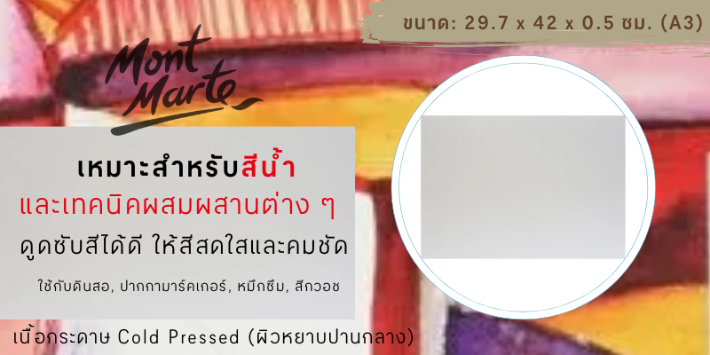 - กระดาษวาดเขียนสีน้ำ MONT MARTE ขนาด A3 จำนวน 5 แผ่น