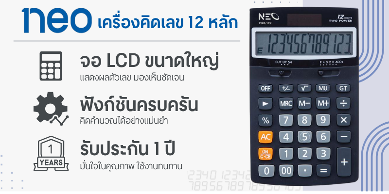 #เครื่องคิดเลข #NEO #เครื่องคิดเลข12หลัก #เครื่องคิดเลขสำหรับสำนักงาน #เครื่องคิดเลขประหยัดพลังงาน #เครื่องคิดเลขรับประกัน1ปี