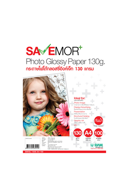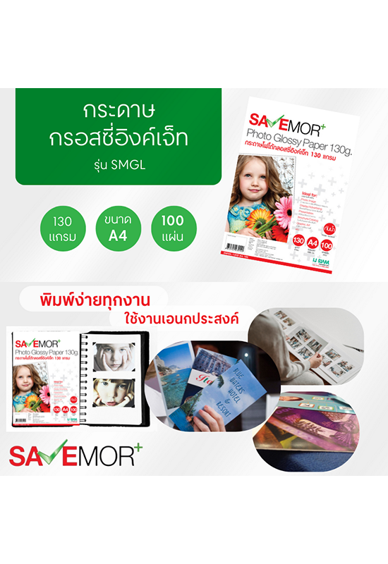 SAVE MORE กระดาษกรอสซี่อิงค์เจ็ท รุ่น SMGL ขนาด A4 130 แกรม 100 แผ่น